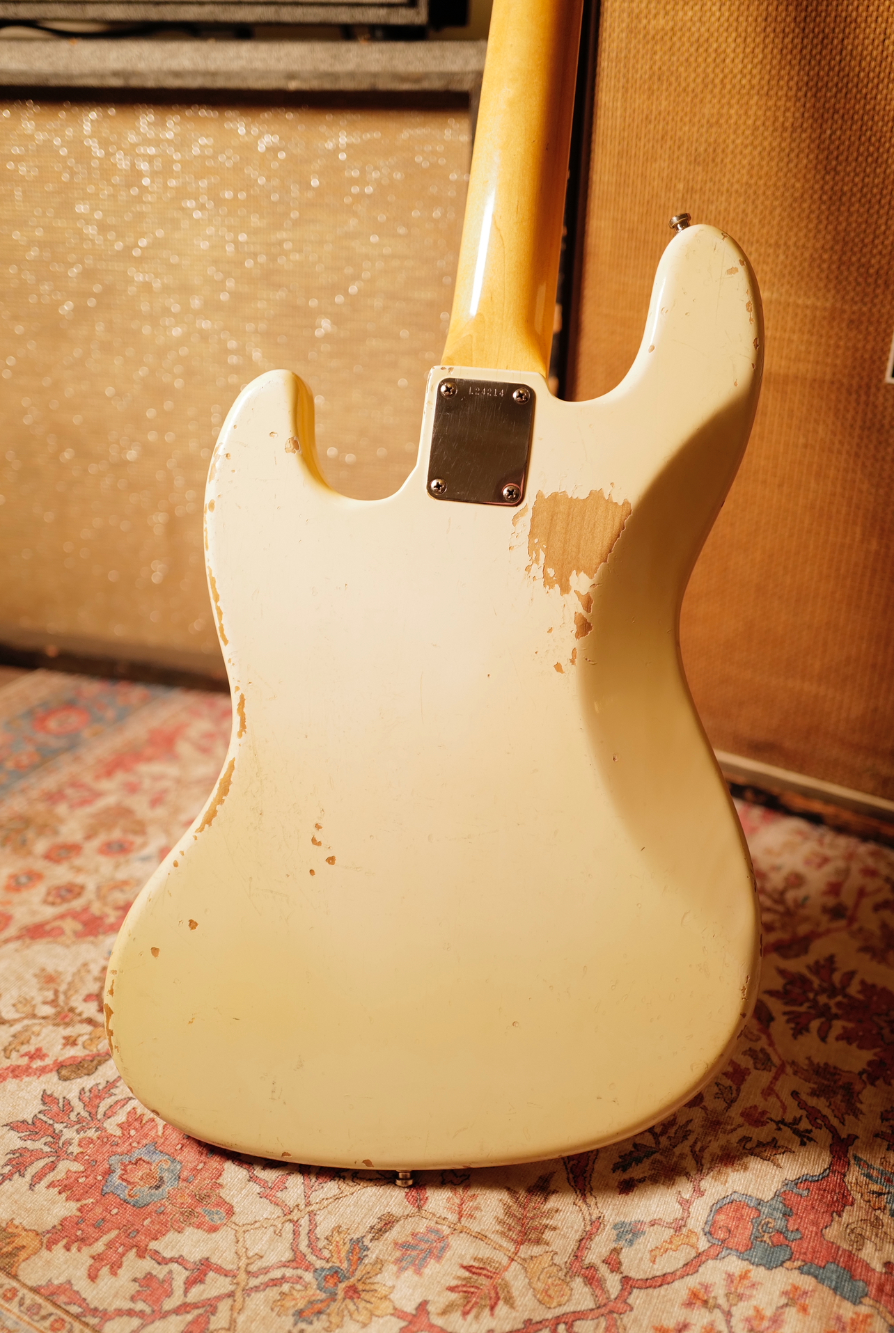 This 1964 Fender Jazz Bass, finished in a stunning Olympic White, is an exceptional instrument that once belonged to Adam Clayton, the legendary bassist of U2, one of the most influential rock bands in music history.