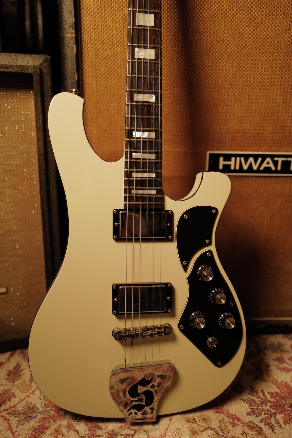 Equipped with dual humbuckers and an ornate "S" logo tailpiece, it offers the sonic versatility needed to drift between ethereal textures and massive distortions.
