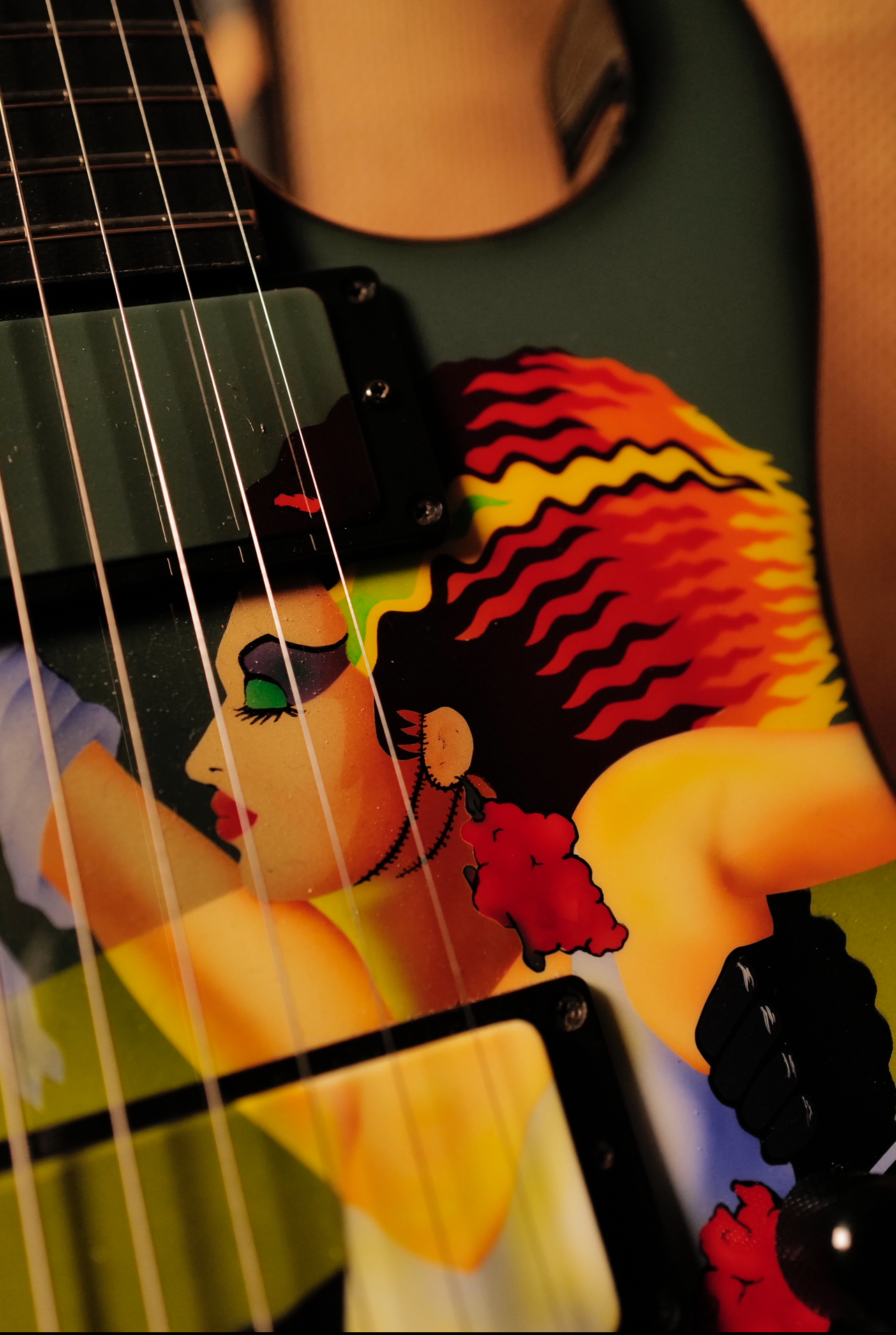 This 2006 Washburn Custom Shop X Series electric guitar, serial number 0602086, is a truly unique instrument owned and played by Kirk Hammett, the legendary guitarist of Metallica. This guitar holds a special place in his career, as it is the original prototype for his “Bride of Frankenstein” model.