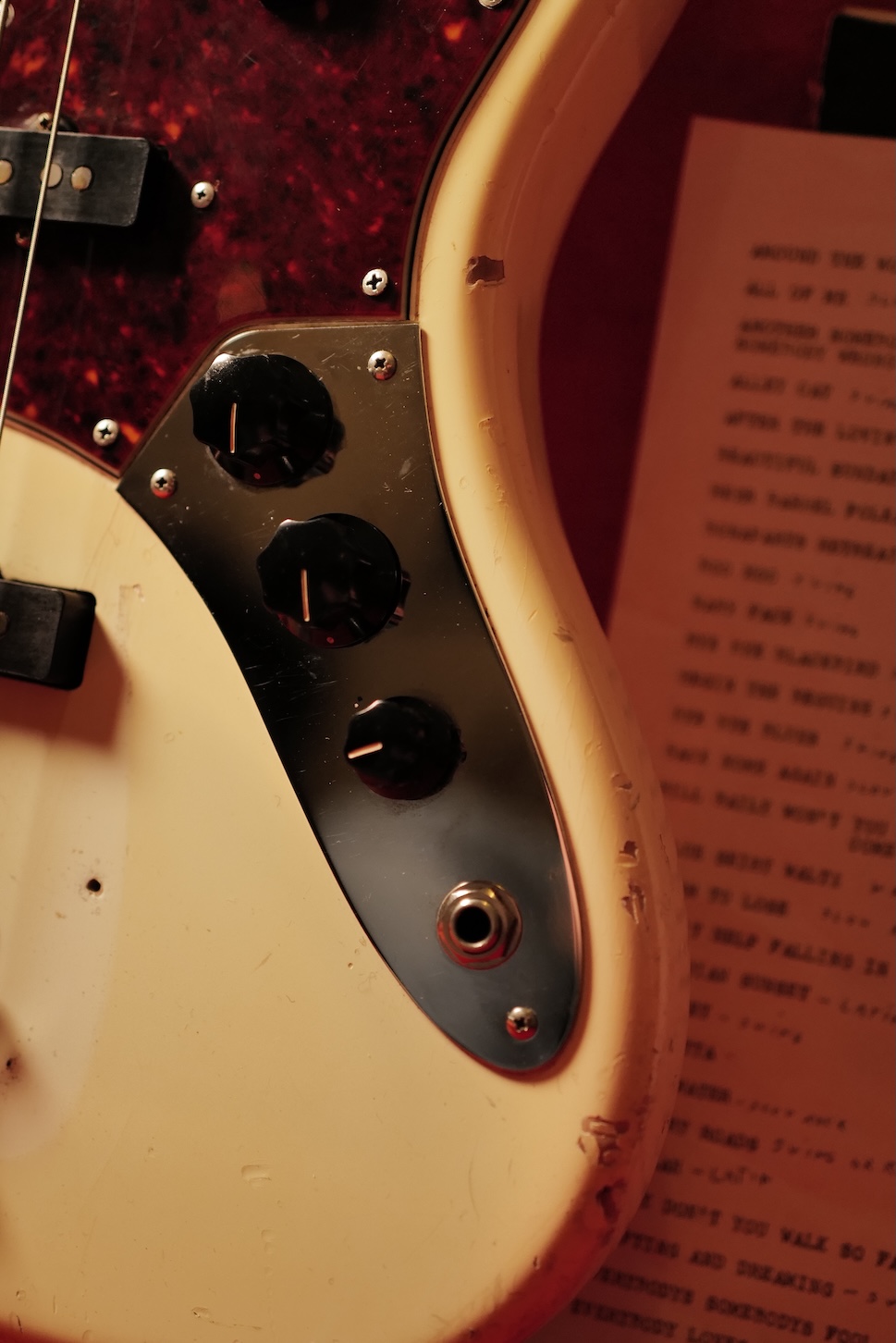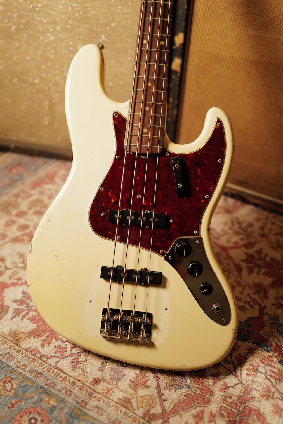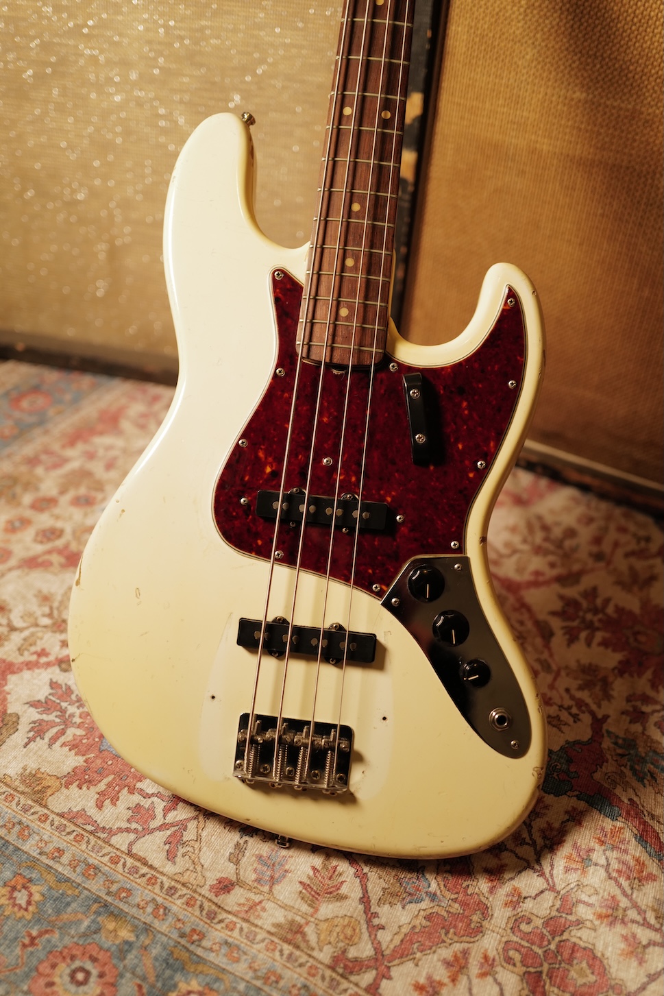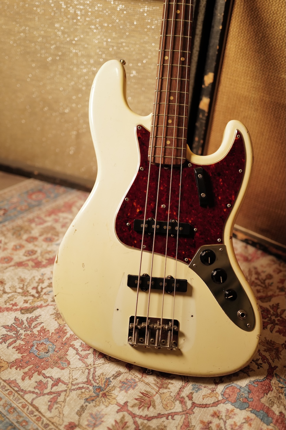 Cette Fender Jazz Bass de 1964, dans sa superbe finition Olympic White, est un instrument d’exception ayant appartenu à Adam Clayton, bassiste légendaire du groupe U2, l’une des formations les plus influentes de l’histoire du rock.