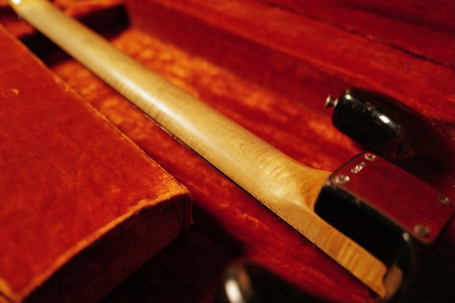 Dotée d’un superbe manche en érable flammé au veinage remarquable, cette Stratocaster se distingue immédiatement. Elle a clairement été jouée au fil des années, et c’est précisément de là que vient sa magie. Le son est ouvert, vivant et profondément inspirant, avec une réponse et une dynamique absolument remarquables.