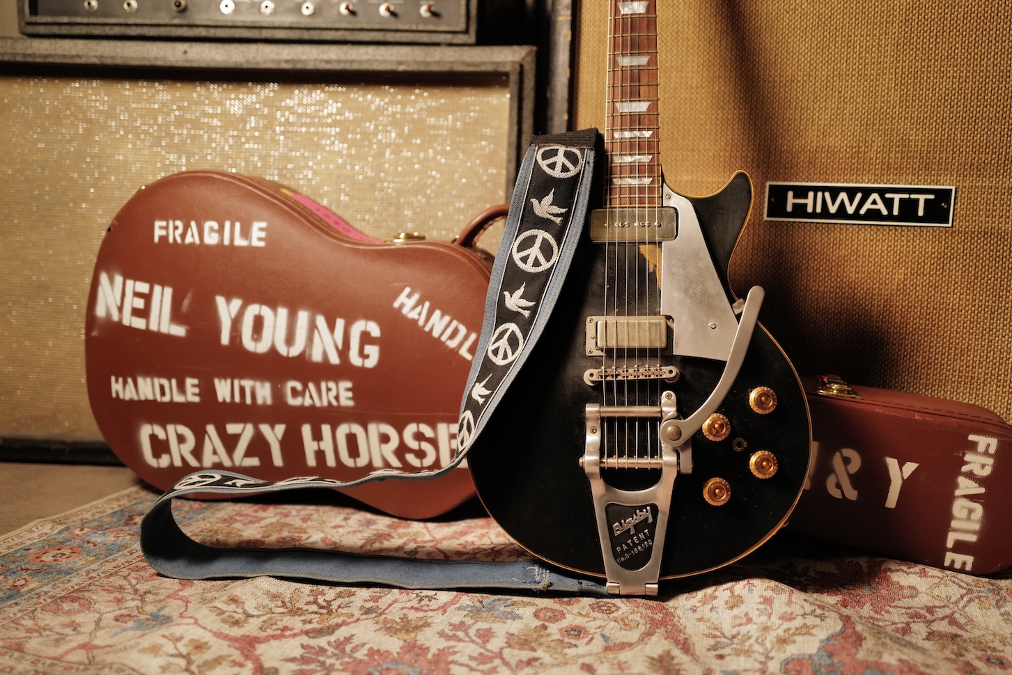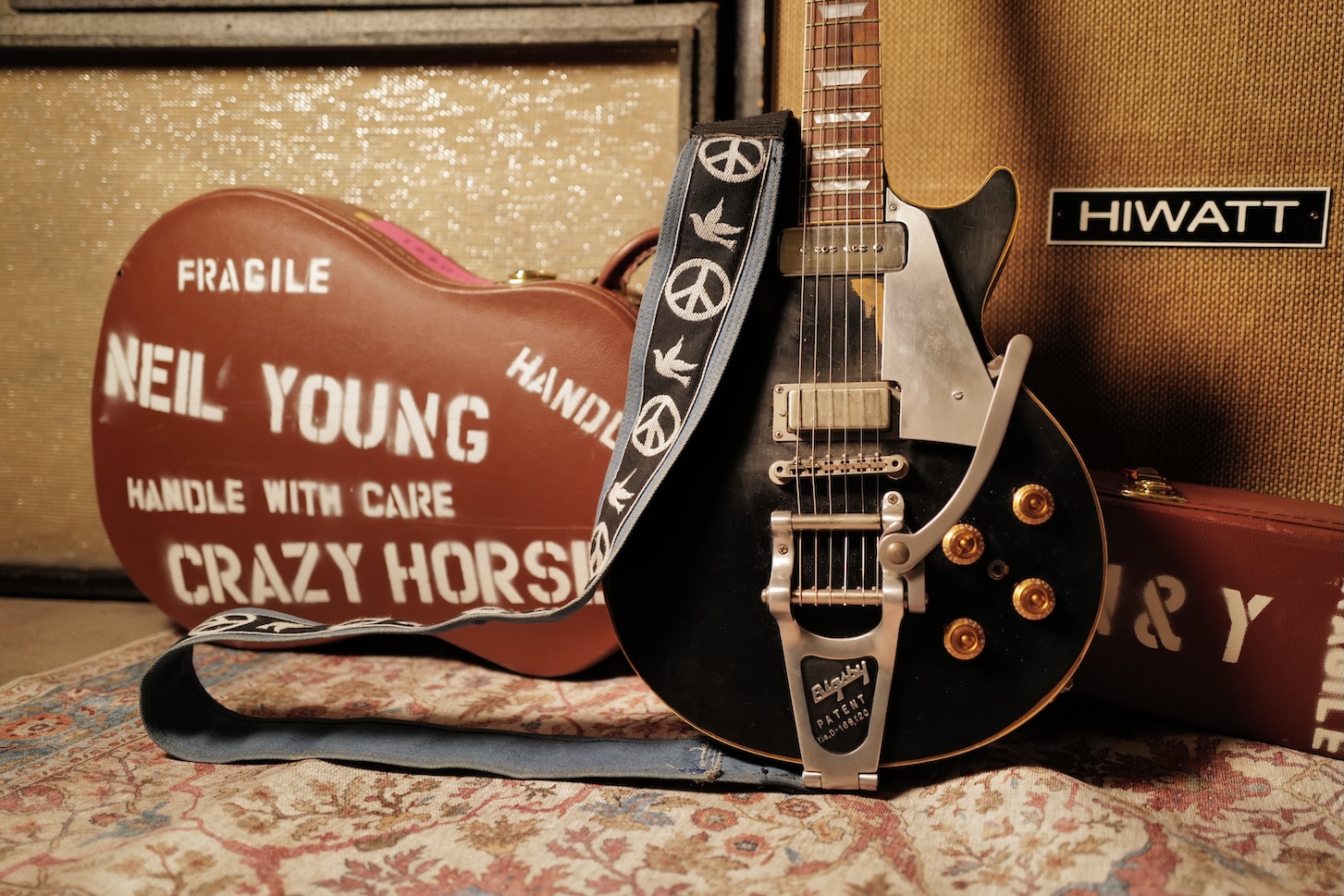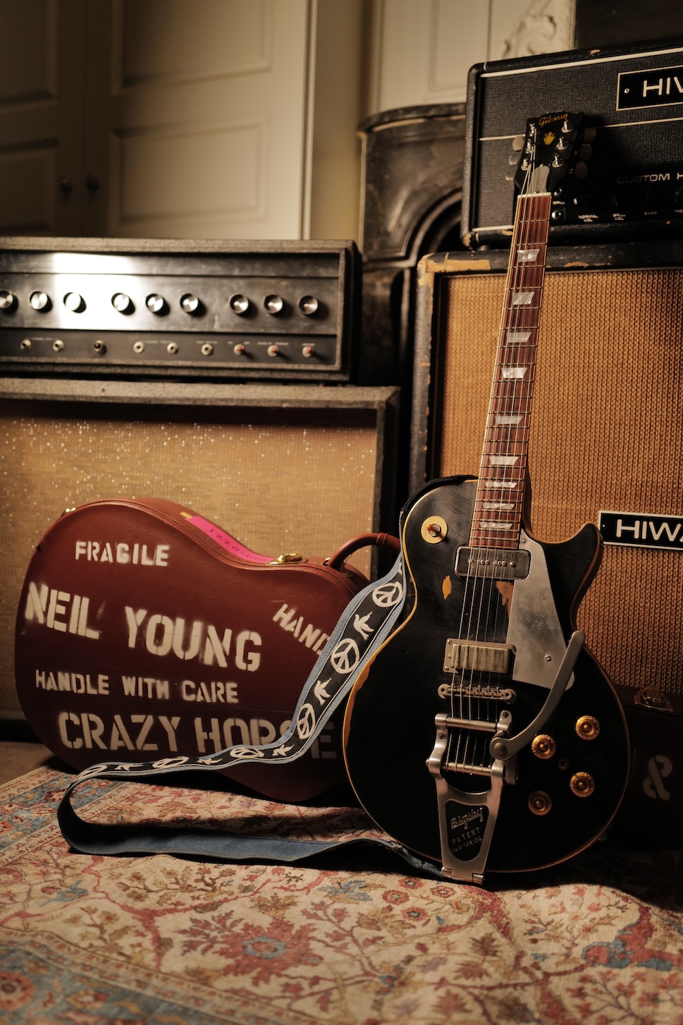 Il s’agit d’une Gibson Custom Shop Makeover à la Neil Young, réalisée par Skylar Guitars, dont le travail est unanimement reconnu pour son niveau d’exigence et de fidélité artistique.