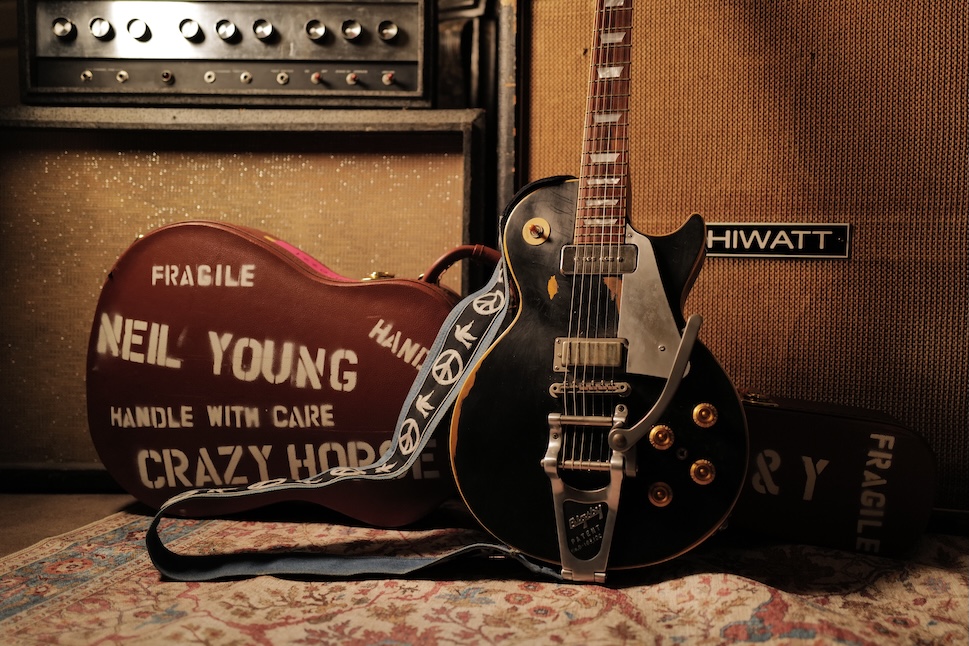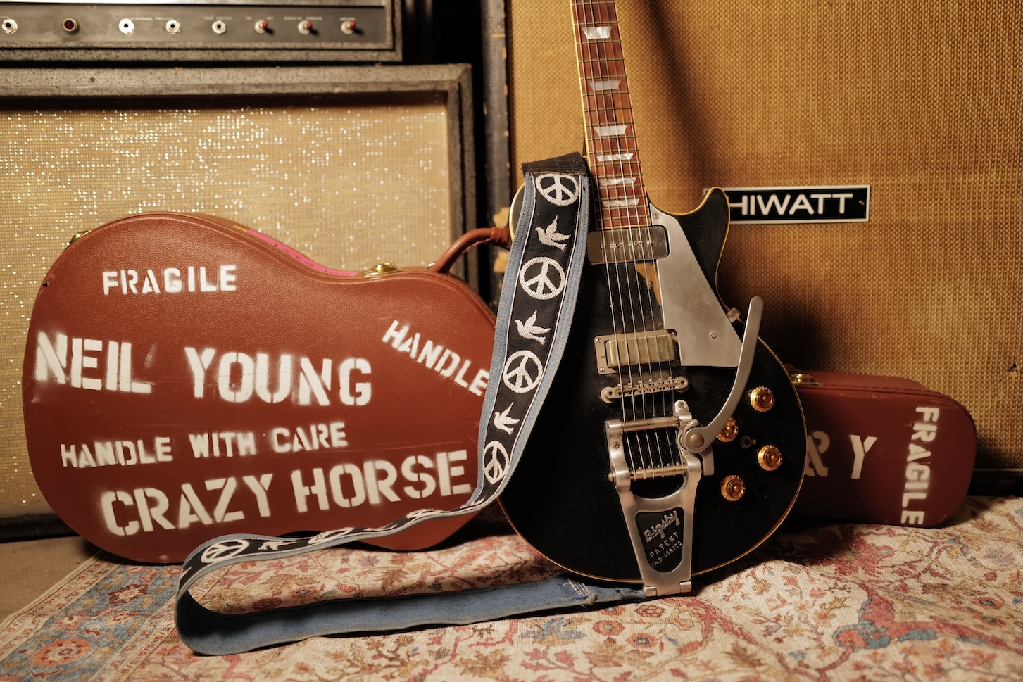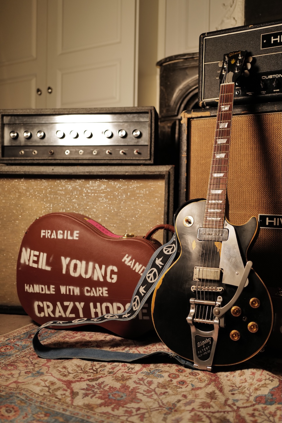 Il s’agit d’une Gibson Custom Shop Makeover à la Neil Young, réalisée par Skylar Guitars, dont le travail est unanimement reconnu pour son niveau d’exigence et de fidélité artistique.