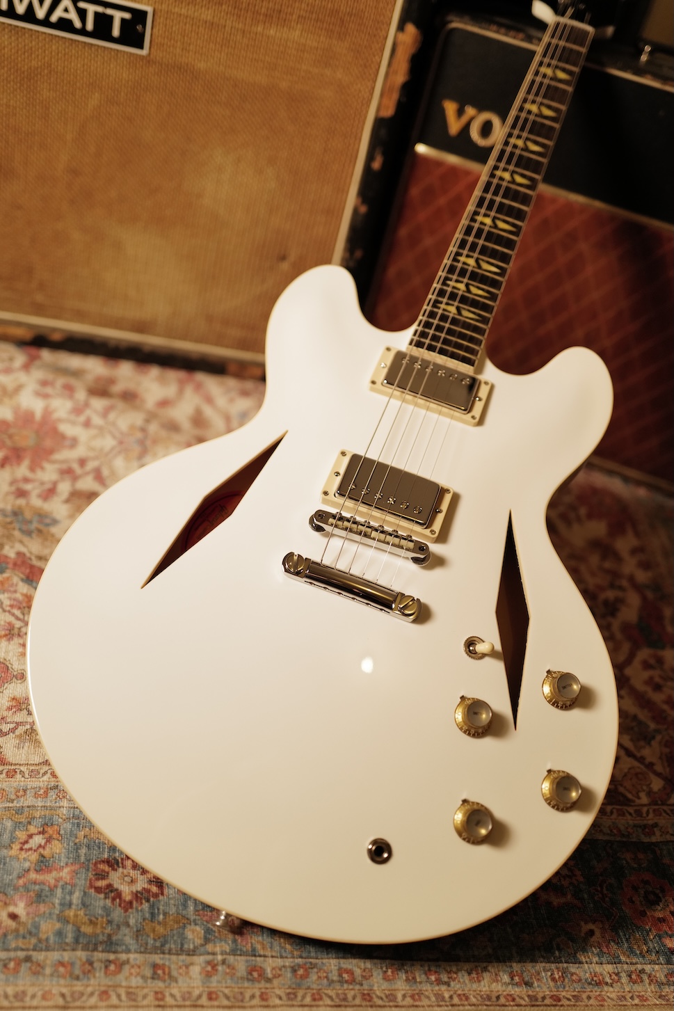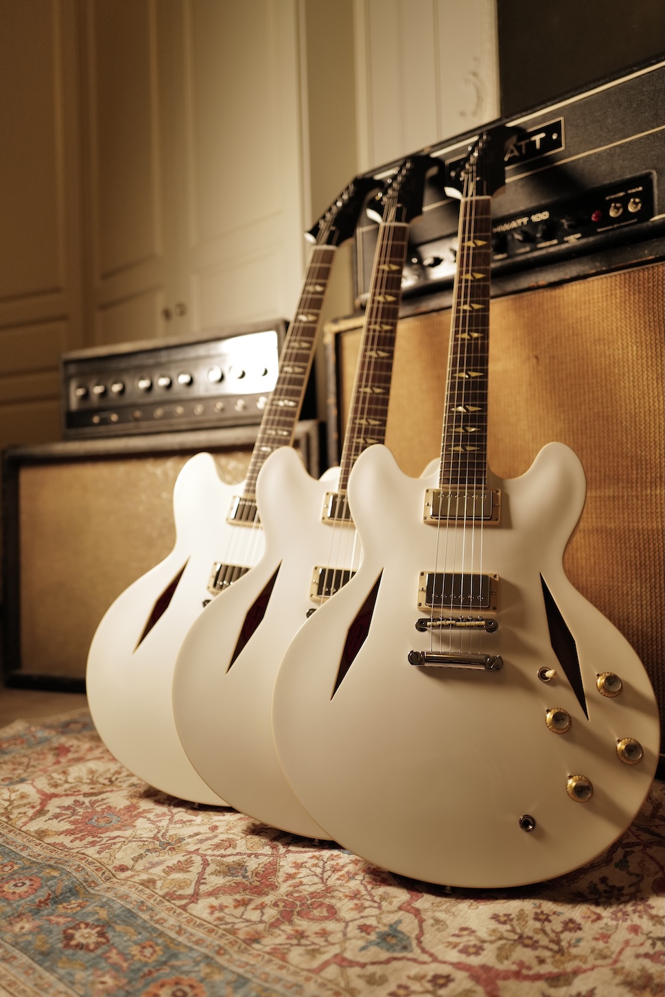 Après de longues recherches, nous avons eu la chance d’en obtenir trois exemplaires. Autant le dire clairement, il s’agit de l’une des meilleures séries produites par Gibson depuis très longtemps. Le son est massif, la fabrication irréprochable, et l’esthétique absolument iconique. Tout ce que l’on attend d’une DG 335, avec en plus l’élégance et la rareté de la finition Alpine White.