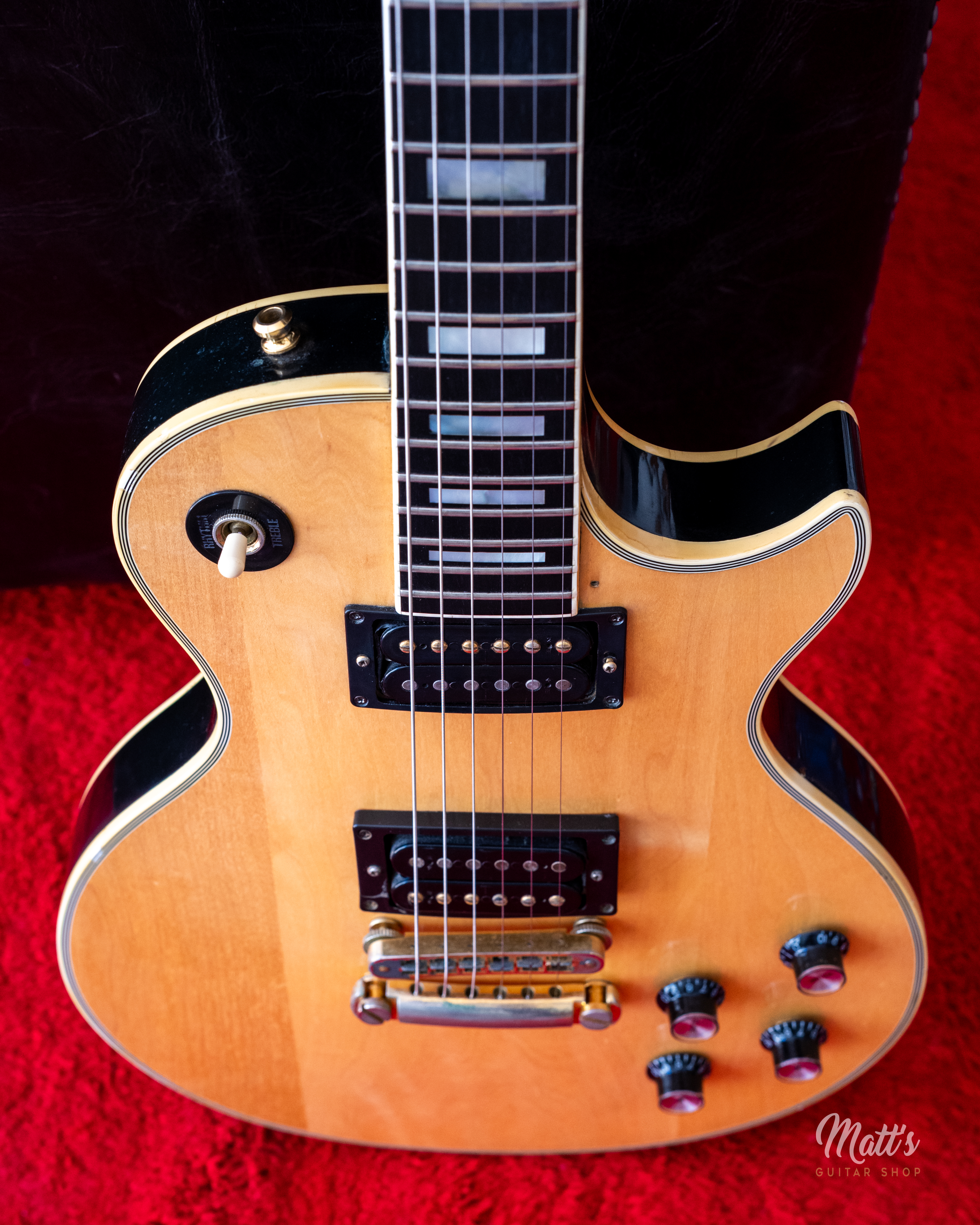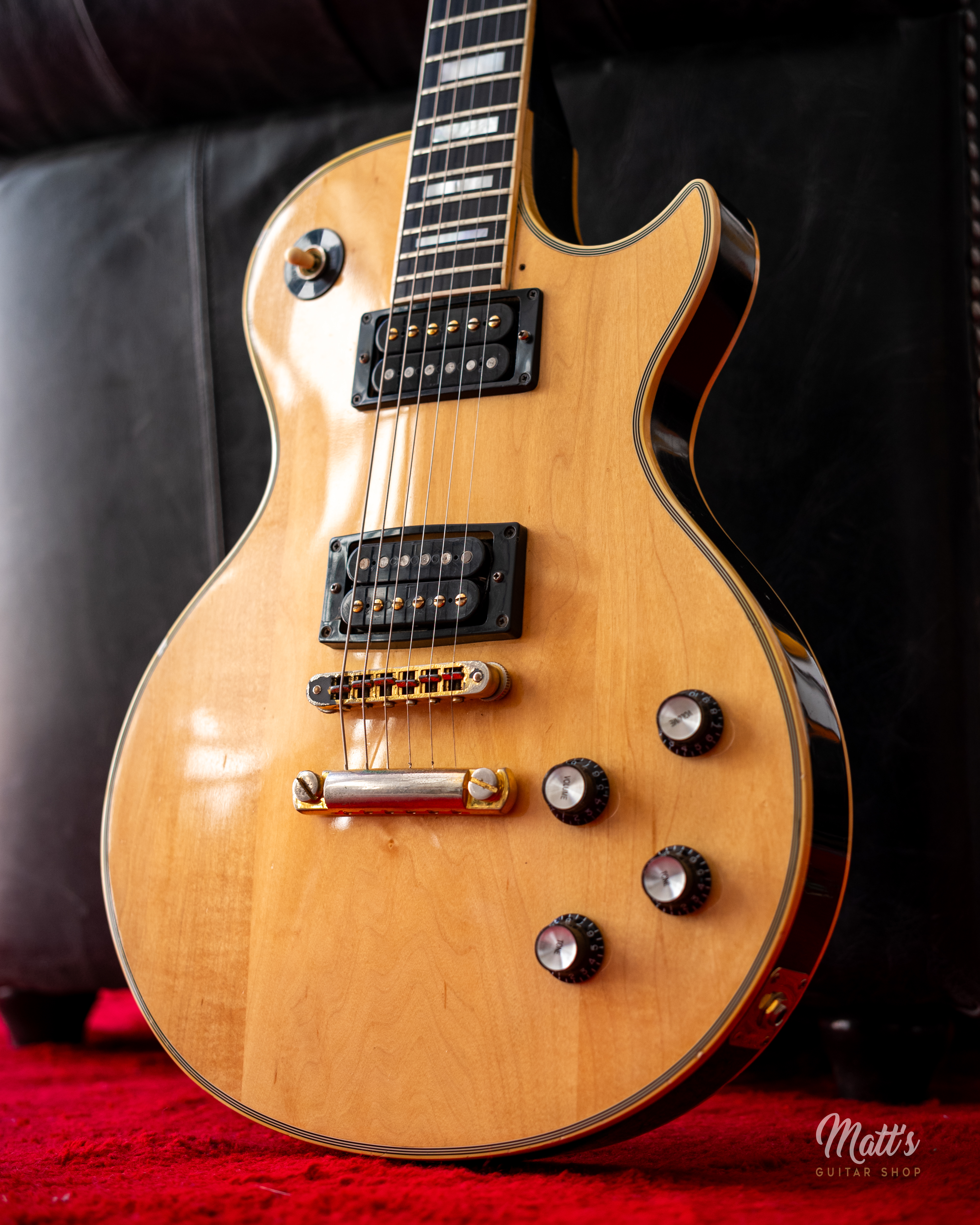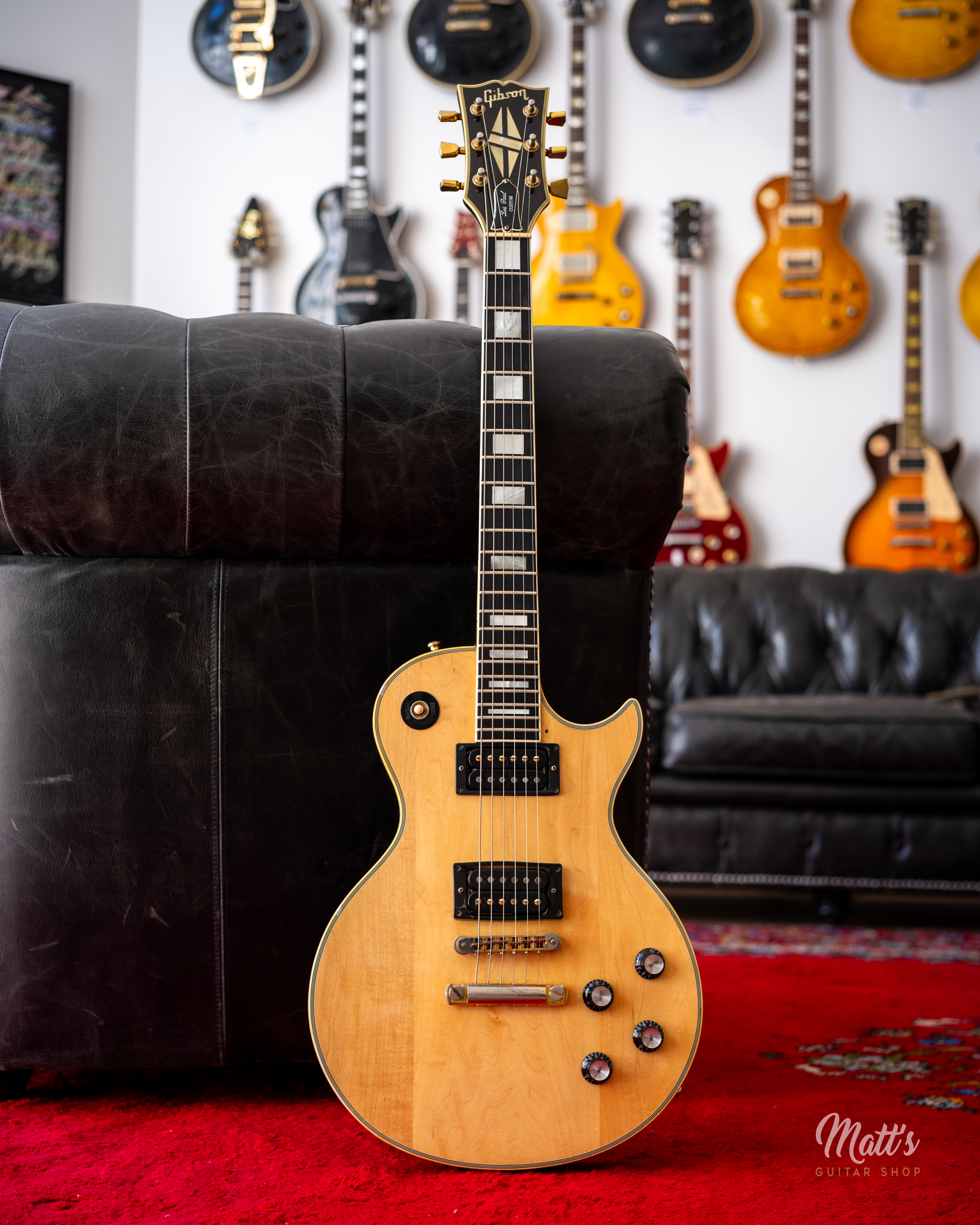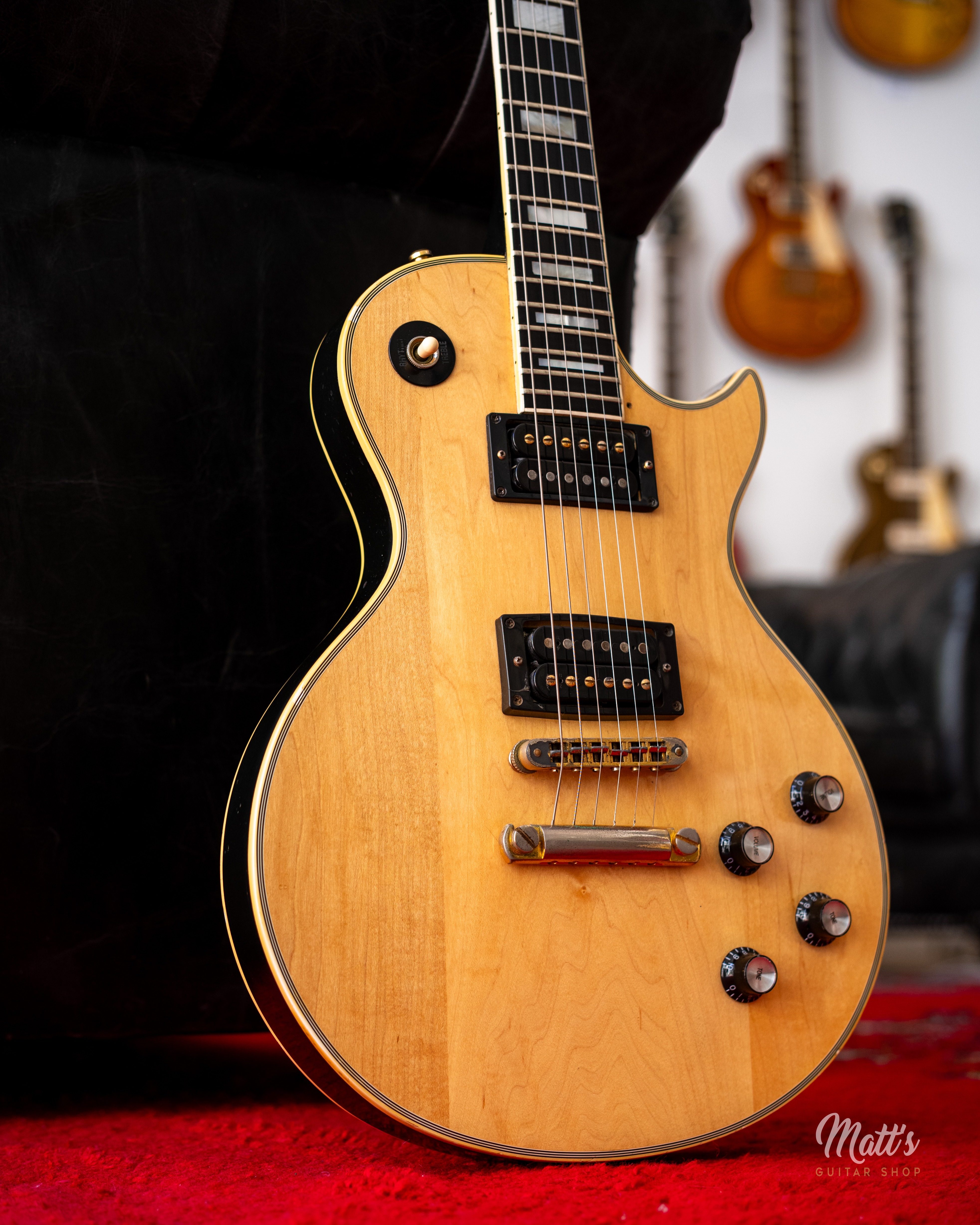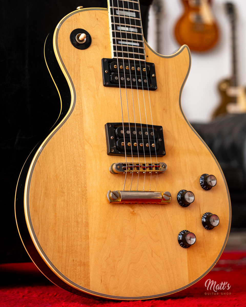 Cette Gibson Les Paul Custom de 1980 fait partie des guitares jouées par Billy Duffy. D'une finition en érable naturelle, elle surprend par sa table claire et devient immédiatement reconnaissable. Billy Duffy était un grand admirateur de Mick Ronson. Jouer une guitare en finition bois naturel est une évocation univoque de sa passion pour Ronson, lui-même célèbre pour sa Les Paul Custom de 1968 à la table poncée.