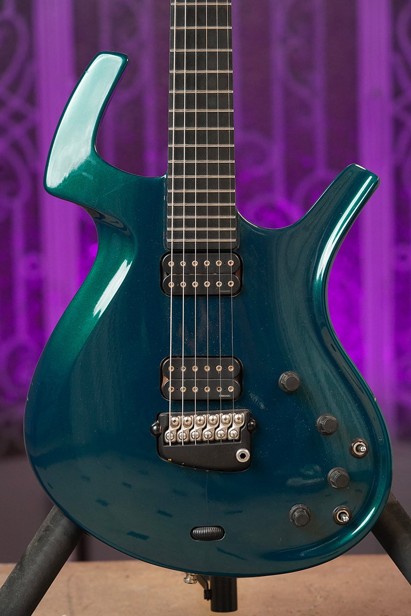 Cette Parker Fly en superbe finition vert émeraude est une guitare étonnante en matériaux composites, utilisant notamment de la fibre de carbone pour un rendu particulièrement léger et des teintes contrastées saisissantes. Jeff Beck a passé beaucoup de temps à jouer cette guitare dans son studio à la fin des années 1990, travaillant sur de nouveaux enregistrements. Étant connu pour son goût de l’innovation et sa quête permanente de sons nouveaux, la guitare avait été réglée selon les exigences très particulières de Beck, dont un mélange de cordes particulier et un accordage d’un demi ton en dessous. C’est une guitare absolument exceptionnelle, ayant su intéresser Jeff Beck lui-même au point de devenir un instrument de travail pour quelques sessions. La guitare est accompagnée d’une lettre d’authenticité de la boutique ayant présenté la guitare à Jeff Beck en 1996.